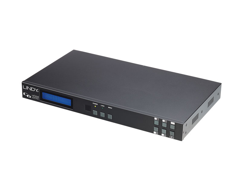 The Premium Matrix Switcher from Lindy transmits high resolution HDMI/DVI signal to 4 HDBaseT receivers over up to 100m Cat.6.