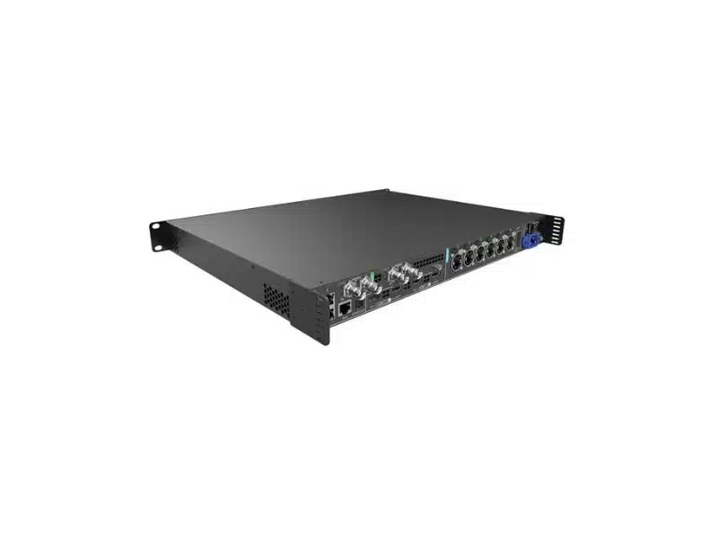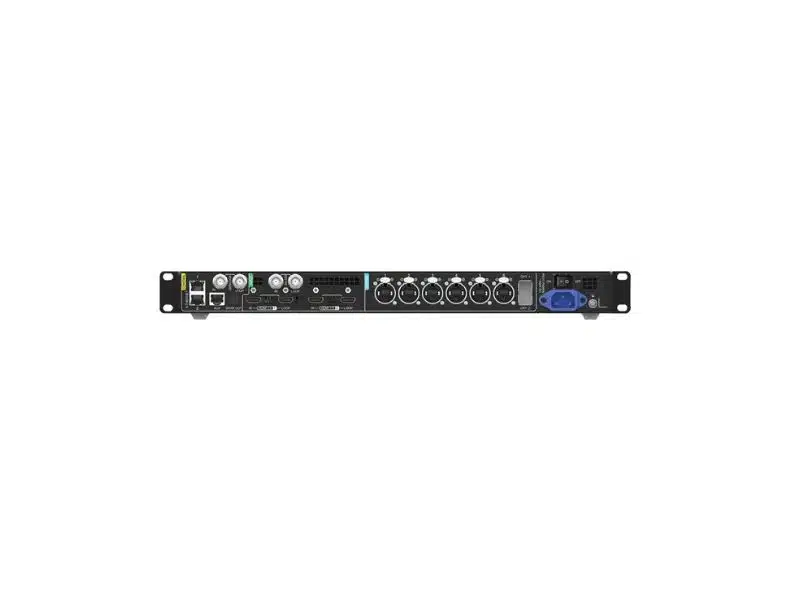 Der Novastar MX20 ist ein All-in-One-Controller für LED-Displays, der sowohl die Videoverarbeitung als auch die Steuerung des LED-Systems in einem Gerät vereint. Dank seiner vielseitigen Ein- und Ausgänge sind unterschiedliche Setups problemlos realisierbar. Er bietet zwei HDMI 1.3-Eingänge mit Loop-Funktion sowie einen 3G-SDI-Eingang mit Loop. Auf der Ausgangsseite stehen sechs Ethernet-Ports, zwei optische 10G-Schnittstellen und ein optischer S/PDIF-Ausgang zur Verfügung. Zusätzlich sind zwei Netzwerkanschlüsse, ein AUX-Port sowie ein Genlock-Eingang mit Loop vorhanden. Die Bedienung erfolgt bequem über einen Drehknopf, eine Zurück-Taste und ein 2-Zoll-LCD-Display. Alternativ lässt sich der Controller auch komfortabel über die benutzerfreundliche VMP-Software steuern. Der MX20 unterstützt die Kaskadenregelung via Ethernet sowie die Protokolle SNMP und Art-Net. Zu den erweiterten Features zählen drei unabhängige Layer, Bildskalierung, eine 14-Kanal-Farbkorrektur, Unterstützung niedriger Latenz und das Monitoring des LED-Systems. Der Controller ist für den Einbau in ein 19-Zoll-Rack geeignet.