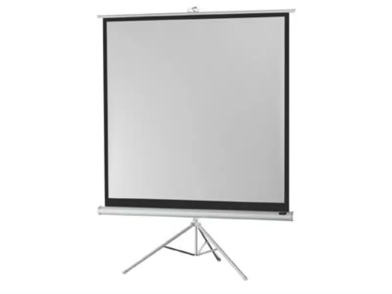 – All-time Classic – Stativleinwand für flexible, mobile Einsätze im runden, rein-weiß lackiertem Gehäuse