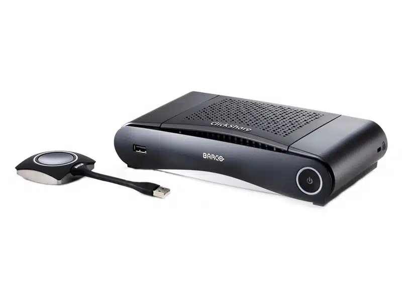 Das unkomplizierte Teilen von Informationen, Präsentationen und ähnlichen Inhalten ist eine der wichtigsten Anforderungen, die an einen Meetingraum gestellt werden. Die CS-100 Base Unit erfüllt Sie problemlos auf Knopfdruck und das ohne zusätzliche Software. Ein einfacher Klick auf den ClickShare-Button und die Inhalte von Ihrem PC oder Mac sind auf dem gewünschten Display zu sehen. Sie möchten lieber Informationen von Ihrem Smartphone oder Tablet zeigen? Kein Thema für das drahtlose Präsentationssystem! Laden Sie einfach die ClickShare-App auf Ihr Gerät und Klick – schon sind Ihre Informationen auf dem Screen zu sehen!