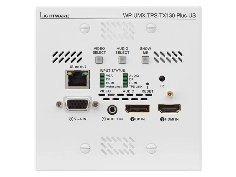 Das Lightware-Produkt WP-UMX-TPS-TX130-US White gehört zu der Kategorie der UMX (VGA, DP and HDMI1.4) 4K UHD wallplates.