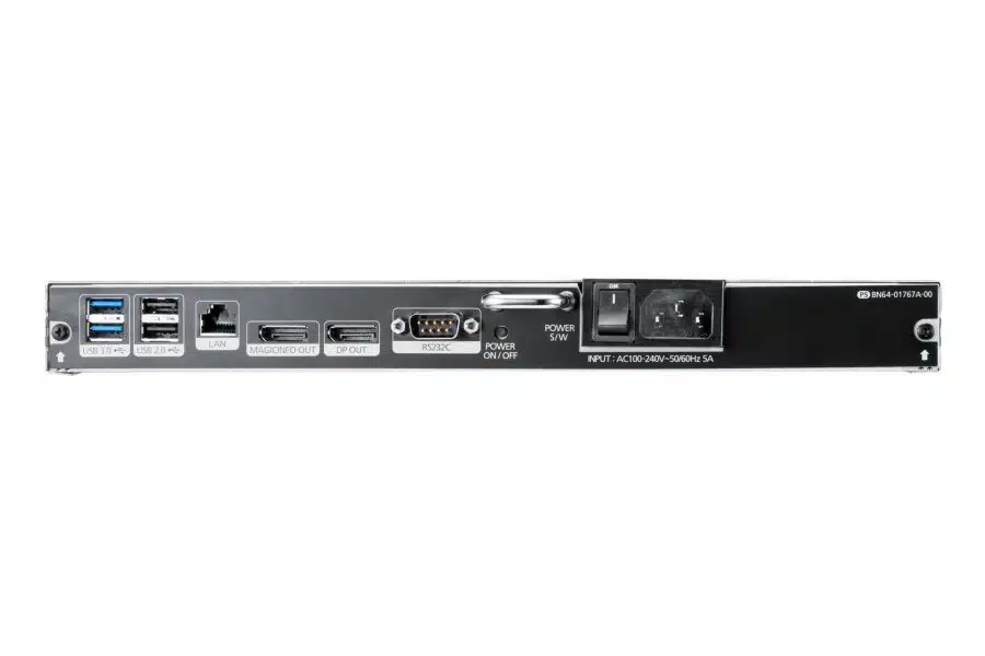 | Anschlüsse | DisplayPort, Magicinfo Out, RJ45, RS232C, USB 2.0, USB 3.0 |