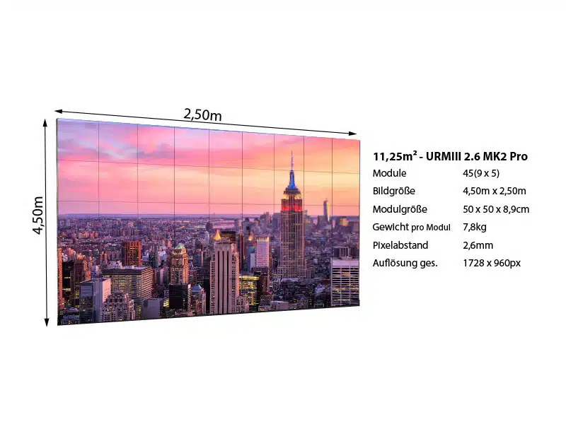 Das Indoor-LED-Modul zeichnet sich durch einen äußerst feinen Pixelabstand von 2,6 mm aus und bietet dank seines Kantenschutzes eine hohe Robustheit. Das URMIII-Modul bietet vielfältige kreative Möglichkeiten für Videowand-Installationen, darunter die Option, Installationen an Ecken oder auf gebogenen Oberflächen (konvex und konkav) zu realisieren. Die Klick-Verriegelung des Moduls ermöglicht eine einfache Ein-Mann-Montage, bei der die Module mühelos zusammengefügt und fest verbunden werden können.