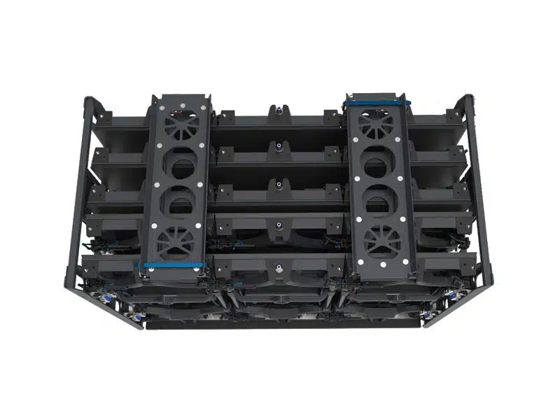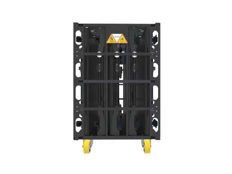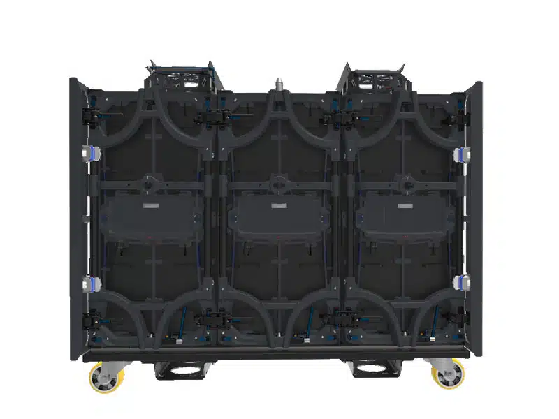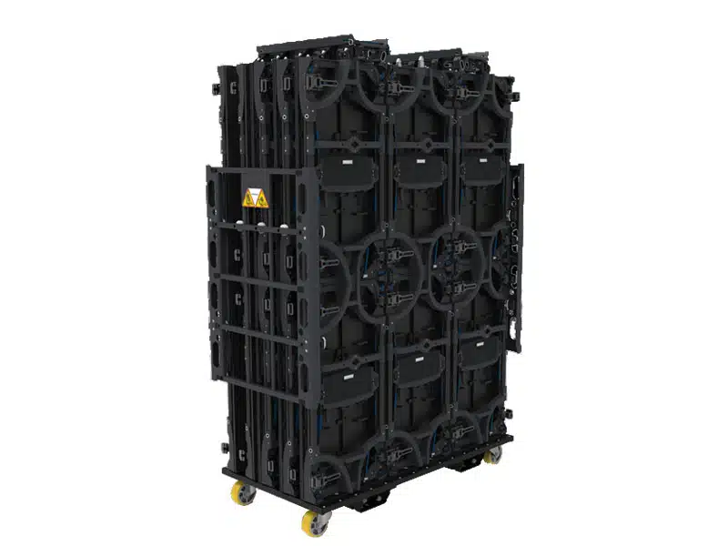 Die LED-Technologie der Upad III H5 LED-Module setzt auf Sicherheit, Schnelligkeit und Bildqualität. Dafür sorgt vor allem auch die Kombination aus Touring-Frame und LED-Modul. In dieser Kombination sind bei Lieferung bereits drei Module miteinander verbunden. Fünf dieser Sets befinden sich in einer Transportbox, dem sogenannten Dolly. Zwei Dollys können übereinander gestapelt und so transportiert werden. So sparen Sie bereits beim Transport Stauraum und Aufwand. Die Sets werden nun komplett ohne zusätzliches Werkzeug miteinander Verbunden, ideal, wenn Sie Großes vorhaben. Zwei Drittel an Zeit können so gegenüber herkömmlichen Konstruktionsweisen eingespart werden.