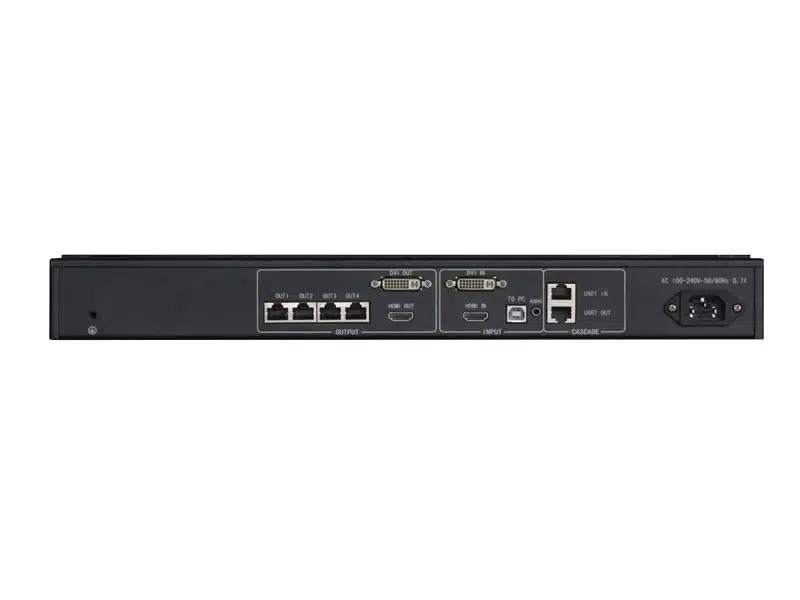 Die Auflösung Ihrer Daten kann 1920 × 1200 Pixel (WUXGA),2048 × 1152 Pixel (QWXGA) oder 2560 × 960 Pixel betragen, für die bestmögliche Übertragungsqualität empfehlen wir Ihnen das FullHD-Format mit 1920 x 1080 Pixeln. Der Controller kann die Ausgangsauflösung mit maximal 2560 x 960 Pixeln flexibel an die LED-Wand anpassen. Für noch mehr Leistung lässt sich der Controller problemlos via UART-Kabel mit zusätzlichen Controllern kaskadieren.