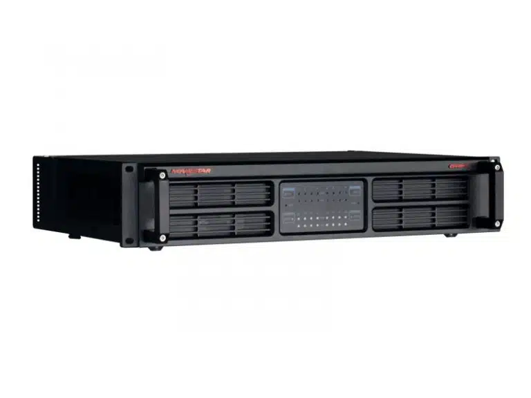 Die Inbetriebnahme geht ganz einfach – das Signal kommt über die 4 Glasfasereingänge vom Controller und wird an die 16 Ethernet-Anschlüsse zu den Endgeräten verteilt. Von den vier optischen Anschlüssen sind zwei Hauptleitungen und zwei weitere als Redundanzleitungen verbaut. Die 16 RJ45-Anschlüsse sind frei als Hauptanschluss oder Back-up konfigurierbar. Zur Stromversorgung stehen Ihnen gleich zwei Anschlussmöglichkeiten für mehr Flexibilität und vor allem Sicherheit zur Verfügung, das sind zum einen ein Anschluss für Kaltgeräte mit 10 Amper und zum anderen der PowerCon blau. Für die Ansteuerung können Sie den Verteiler mit einem zusätzlichen RJ45-Anschluss oder via USB 2.0 (Typ B) verbinden. Auf der Vorderseite befindet sich ein praktisches Display, das Ihnen schnell zu jedem Anschluss den Status verrät.