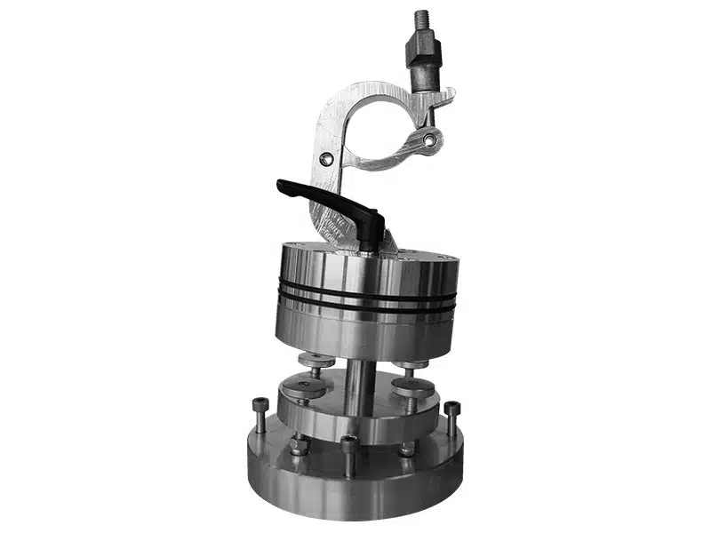 Mit der Projektorhalterung TH-Short-150-8 können Sie Beamer und Projektoren hängend an Traversen befestigen. Dieses Modell, Shorty-150-8, ist unter anderem für die Panasonic Projektoren DZ21K, DZ21K2 und RZ21K kompatibel. Mit einer maximalen Traglast von 150 kg können an Ihr Flugrahmen und Beamer problemlos befestigt werden. Zur Montage des Beamers wird dieser im passenden Flugrahmen befestigt. Mit 4 Sicherungs-Schrauben fixieren Sie nun die Traversenhalterung mittig auf der Rückseite des Flugrahmens. Die C-Schelle wird mit der soeben befestigten Kombination aus Beamer und Flugrahmen an die Traverse gehangen und sicher verschlossen. An der Traversen-Halterung für Beamer und Projektoren befindet sich ein Hebel, lösen Sie diesen ist die Vorrichtung im Winkel von 360° rotierbar. Schließen Sie den Hebel wieder, fixieren Sie die gewünschte Position. Ähnlich verfahren Sie mit den 4 praktischen Stellschrauben der TH-Short-150-8. Mit diesen Schrauben kann die Neigung nachträglich angepasst und sicher festgestellt werden. Die Projektorhalterung ist nach DGUV V17 (BGV-C1) geprüft und abgenommen und die C-Schelle nach TüV-Norm bestätigt.