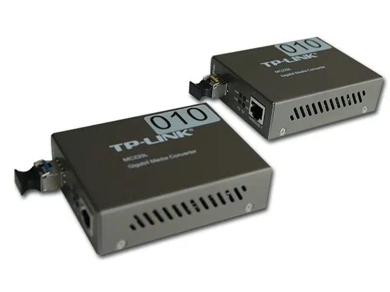 Gigabit-Medienkonverter Set – TP-Link mieten: Dieses Set beinhaltet den Gigabit-Ethernet-Medienkonverter MC220L sowie die bidirektionalen 100Base-BX-WDM-SFP-Module TL-SM321A und TL-SM321B aus dem Hause TP-Link. Der MC220L wurde für den Einsatz mit Multimode- oder auch Singlemode-Glasfaserkabel und dem SC/LC-Stecker konzipiert. Er sendet im Fiber Optic-Long-Distance-Modus mit Unterstützung eines Multimode-Glasfaserkabels bis in eine Entfernung von 550m. Beim Einsatz eines Singlemode-Glasfaserkabels gar bis in eine Entfernung von 10km. TL-SM321A und TL-SM321 sind beide bidirektionales WDM-SFP-Module, welche bidirektionales WDM unterstützen, was nur eine einzige Faser verwendet und somit Kosten einspart.